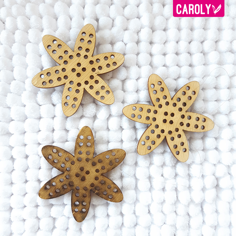 Maak je tas, mand of ander project helemaal af met leuke houten bloemen.