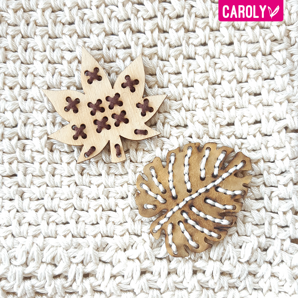 Maak je tas, mand of ander project helemaal af met leuke houten tropical leaves.