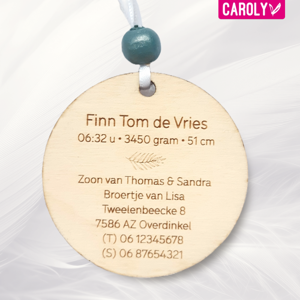 Het kaartje wordt aan beide zijden gegraveerd en heeft een diameter van 65mm.