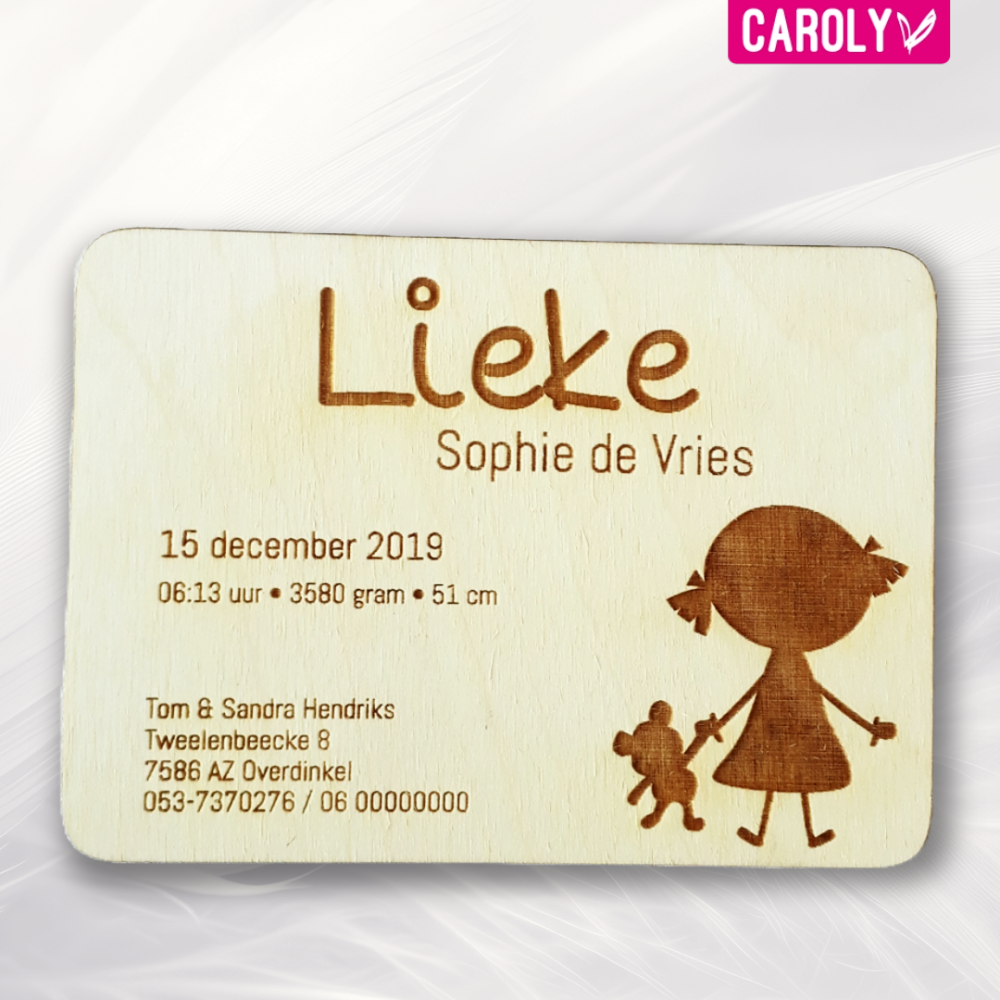 Het kaartje wordt gemaakt van 3mm berken naturel en is 8x11 cm.