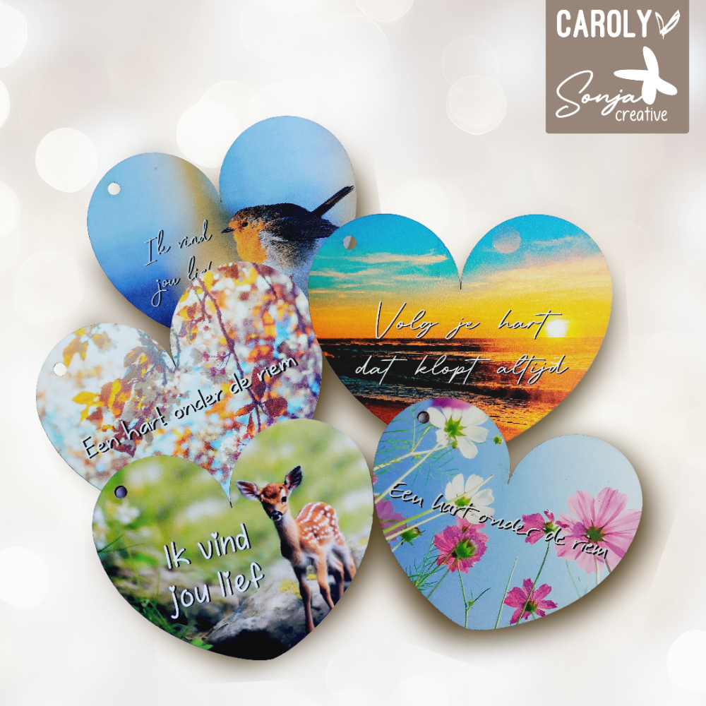 Aanbieding! Setje van 5 verschillende houten hartenkaarten!