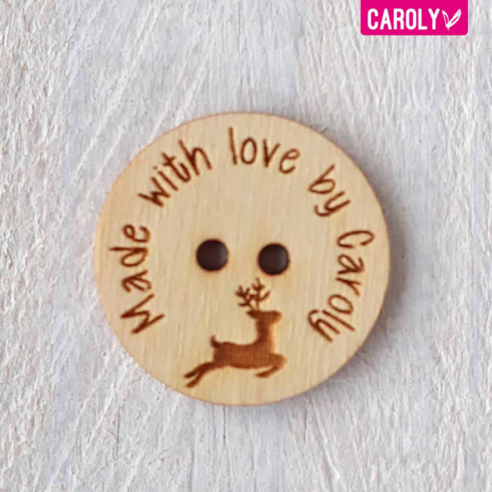 Maak je werk af met een houten knoop met je eigen tekst!