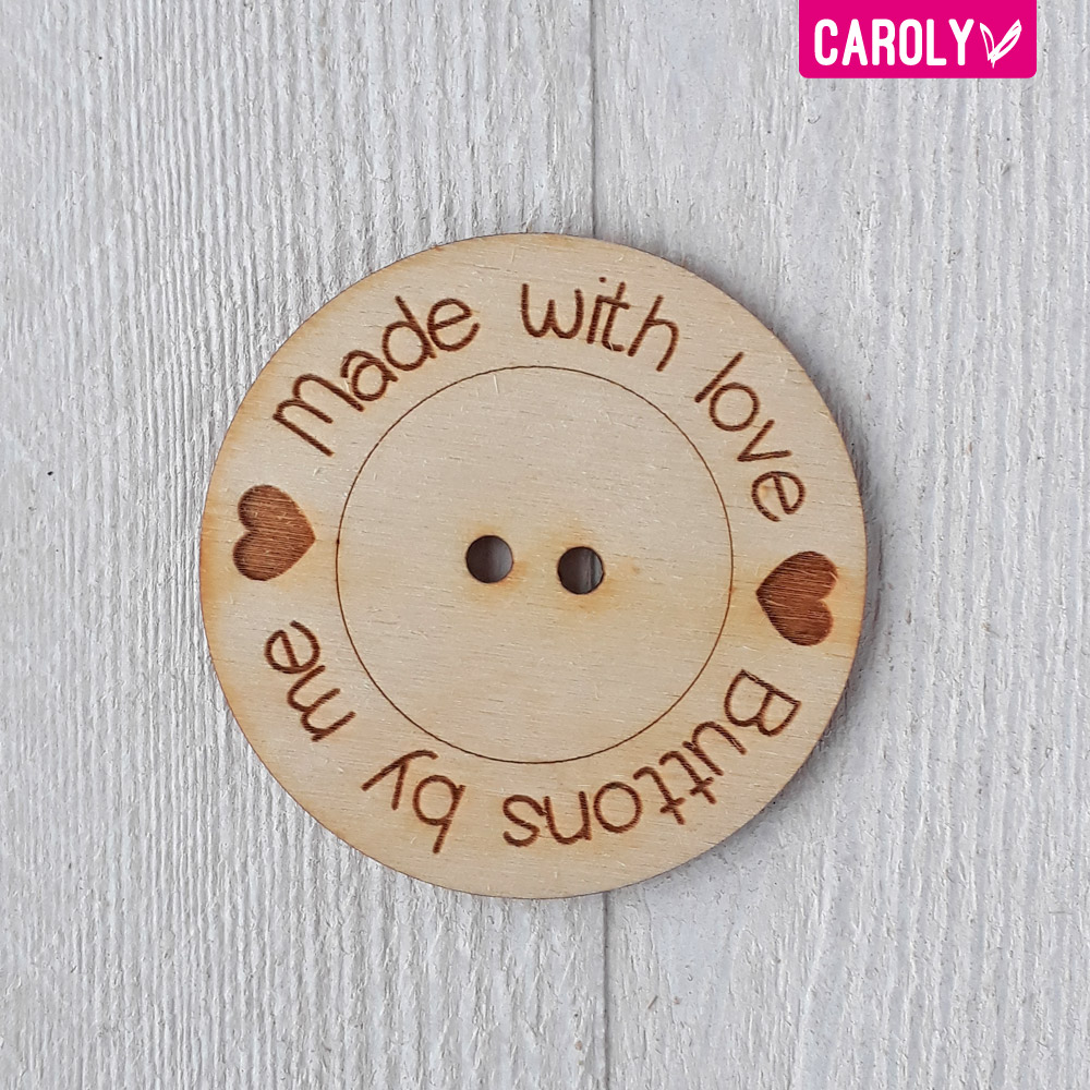Maak je werk af met een houten knoop met je eigen tekst!