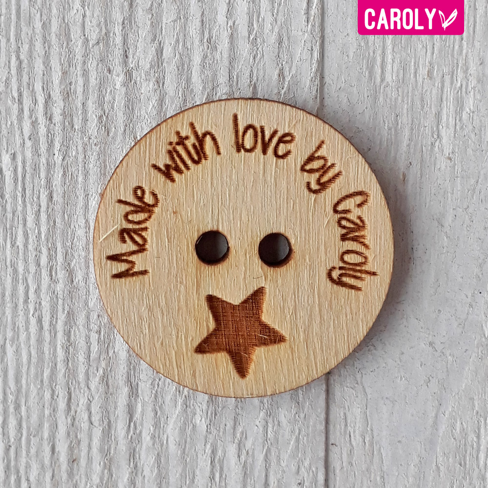 Maak je creatie helemaal af met deze leuke houten knopen met ster gecombineerd met je eigen tekst.