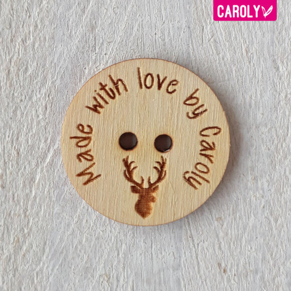 Maak je creatie helemaal af met deze leuke houten knopen met hertenkop gecombineerd met je eigen tekst.