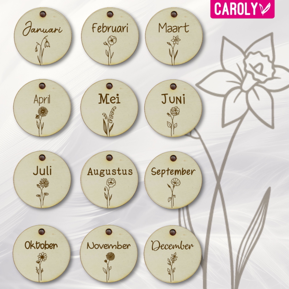 Een overzichtje van de bloemen met bijbehorende maand staat bij de foto's.