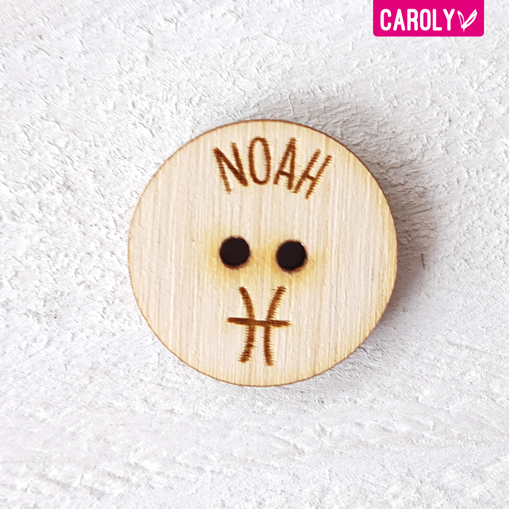 Maak je creatie helemaal af met deze leuke houten knopen met sterrenbeeld vissen met naam.