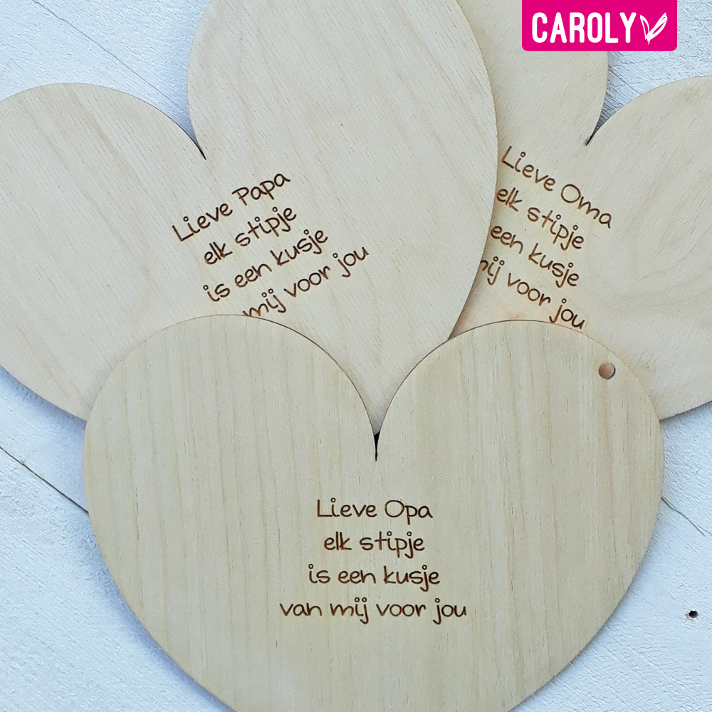 Op de achterkant graveren we een lieve tekst en je kunt zelf kiezen voor mama/papa/opa/oma.
