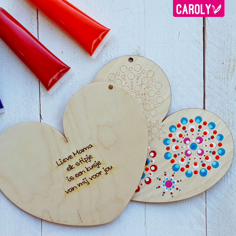 Dit mooie houten hart van ong. 15x18cm wordt gemaakt van 3mm berken en om het makkelijk te maken is deze voorzien van een stippatroon.