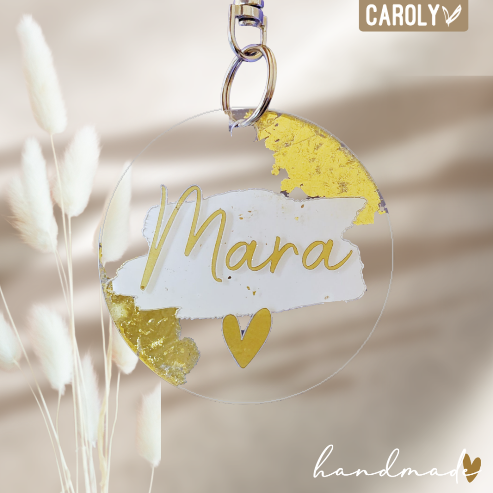 En uiteraard met jouw naam! De tashanger heeft een diameter van 8cm.